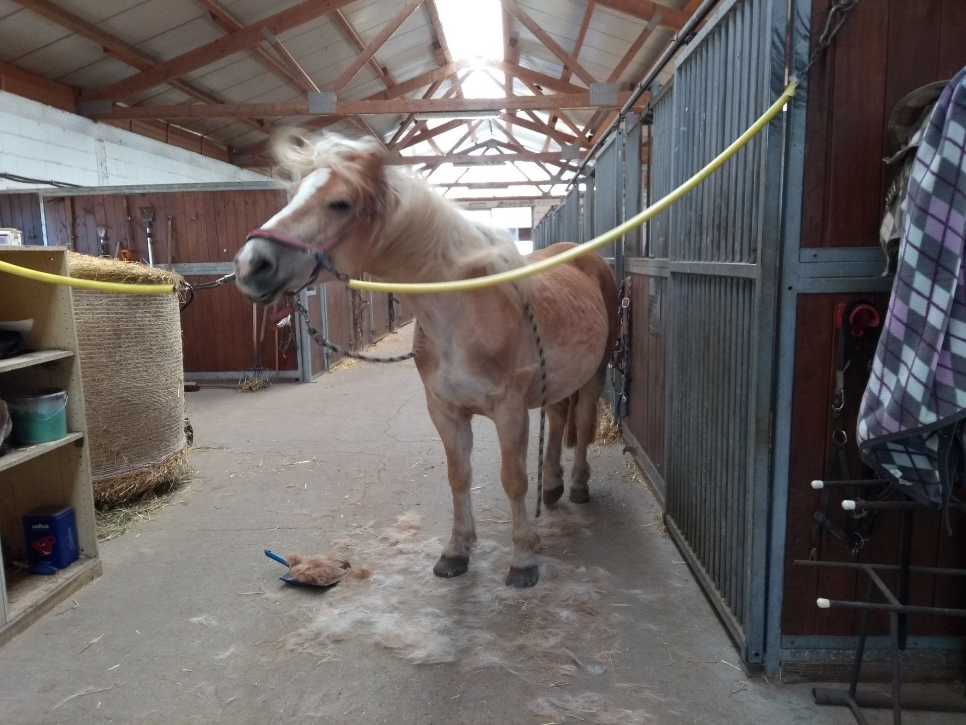 Es wird in allen Lagen geschlafen, sogar beim Heu fressen. Die meisten Pferde wundern sich, dass ihr Mensch so schnell wieder verschwindet aus dem Stall und auch zwischendrin öfter auf die Uhr schaut. Tja, jeder hat halt nur nur maximal 2 Stunden Zeit fürs Tier und muss sich vorher in eine Liste eintragen, damit sich nur wenige Personen begegnen. Einige Pferde und auch die Katze nutzen die Chancen über den Tag verteilt Leckerlies von allen abzugreifen. Irgendwie ist ja jetzt zwischen 10 Uhr und 20 Uhr immer jemand im Stall. Manche Pferde machen Zungengymnastik für eine Gabe, andere fordern es mit Wiehern ein.